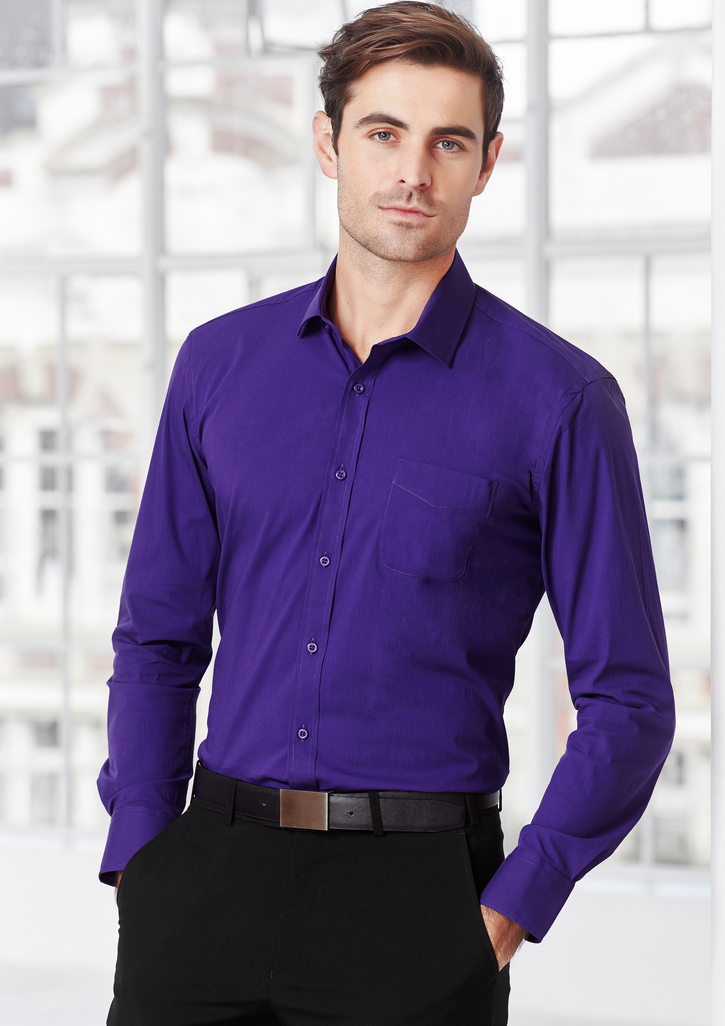 • Two-piece button-down collar, centre back box pleats and hanger loop, and chest pen holder reinforced at edges